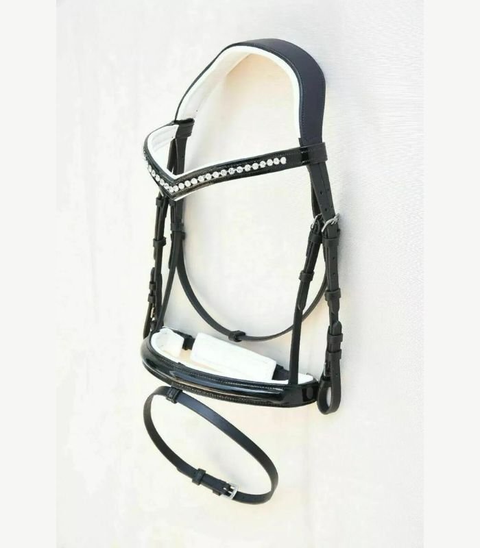 Be the first to review “Dressage leather Bridle With White Crystal Browband.” Cancel reply