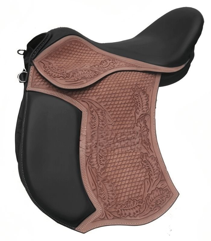 For jumping and natural riding, this flexible saddle allows a natural bascule over bigger fences and the reach of the galloping and jumping horse is unimpeded.
