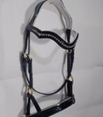 Dressage Bridle white & Aqua blue Zarkan stone Black leather With Reins