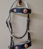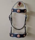 Beautifully hand carved on Oval shape browband & Noseband with white stiching and padding.