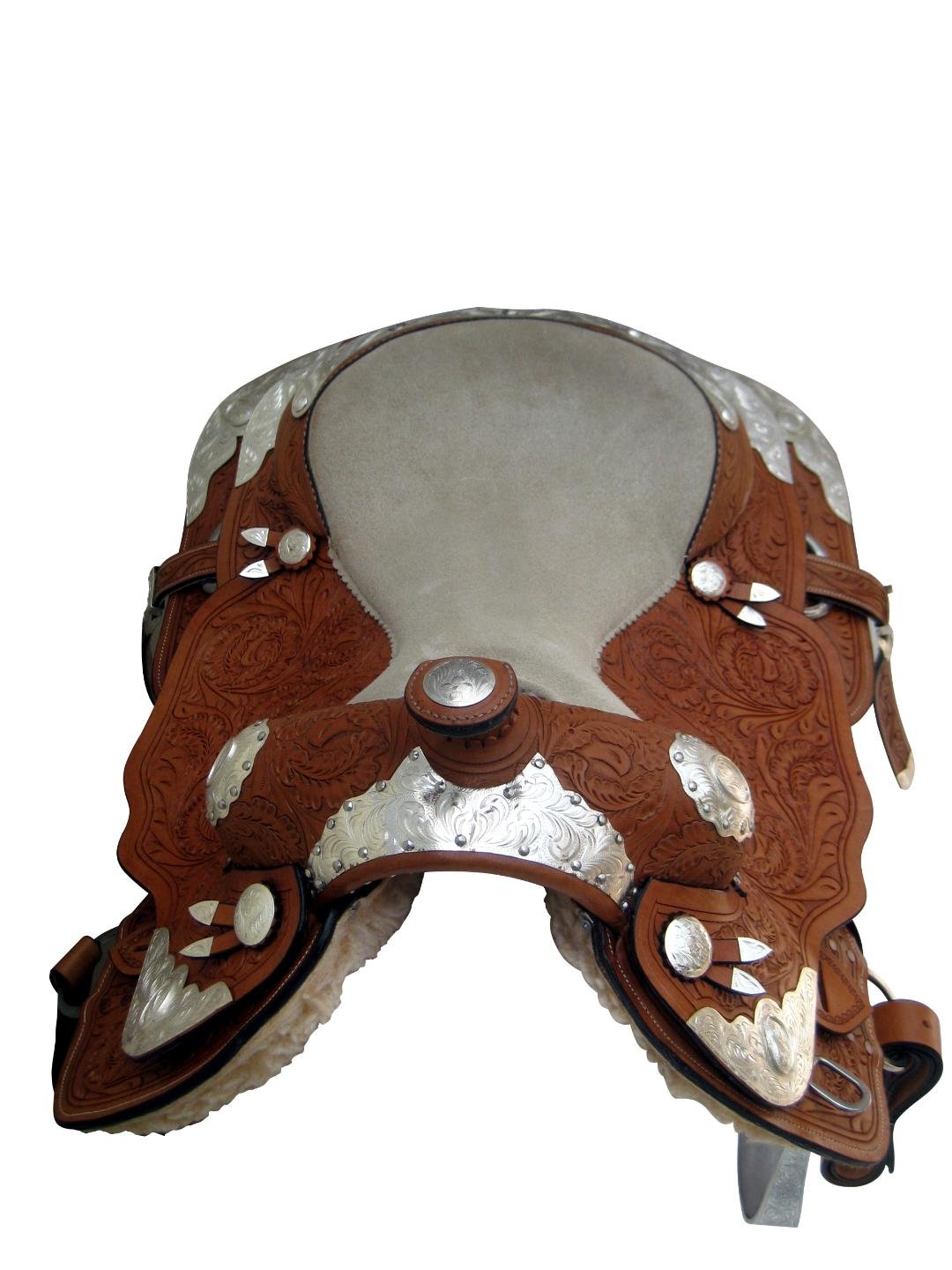 Western Show Saddle Leather Silver Fitting Seat Size 15,16,17,18